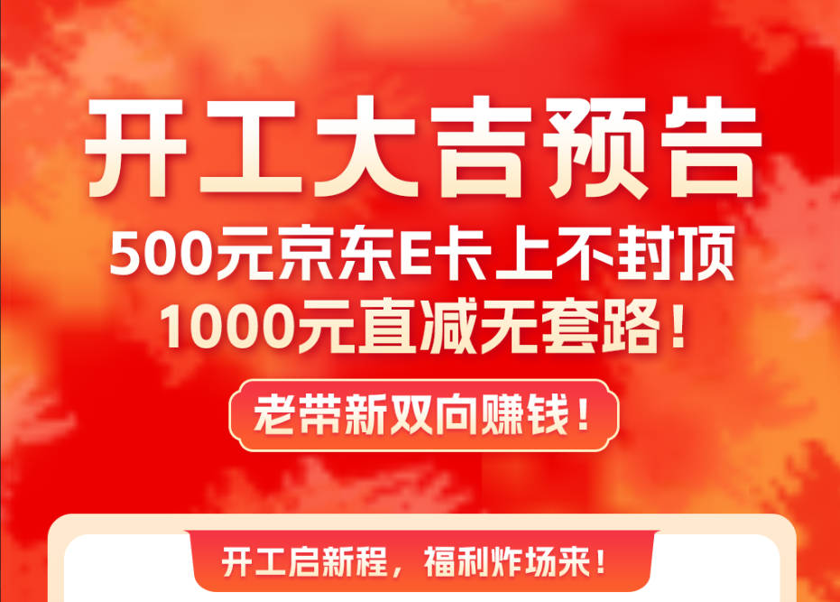 开工发福利!500元京东卡上不封顶,还有1000元直减券,老带新还能双向赚钱!